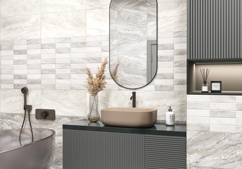 Коллекция Адриатик / Adriatic — это дыхание моря, застывшее в камне. Тёплая гамма создаёт атмосферу солнечного побережья, наполняя пространство светом и уютом. Холодная гамма передаёт свежесть и глубину морской воды, добавляя интерьеру сдержанности и элегантности. Ключевой элемент — декоративные массивы на рельефе «кирпичик». Они сохраняют мраморную текстуру в тон базовых плиток, но за счёт рельефа создают выразительный объём. С помощью этих элементов можно акцентировать стену, создав эффектную фокусную точку, добавив пространству сложности и художественной завершённости.